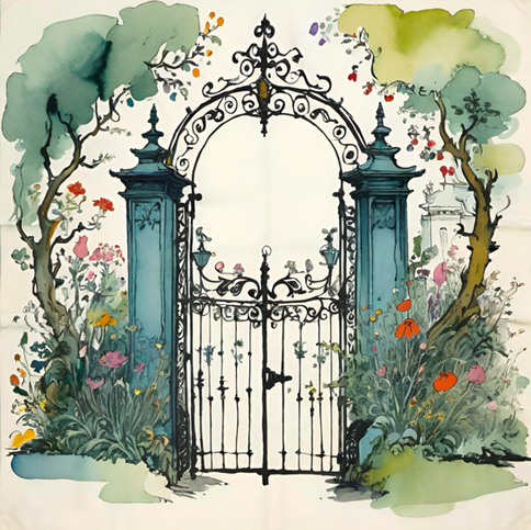 Jardin Secret is a delicate and enchanting series of A.I.-generated squared illustrations and prints inspired by the romantic splendor of French gardens, envisioned in the refined style of hand-painted silk. Each composition is a celebration of ornamental beauty; where nature is artfully composed, and every petal, vine, and flourish is rendered with timeless elegance.