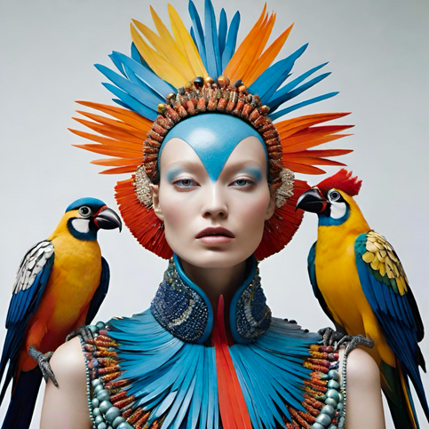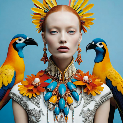 Exochic is a flamboyant celebration of nature’s most extravagant muses; tropical birds; reimagined through the lens of high fashion and A.I. innovation.