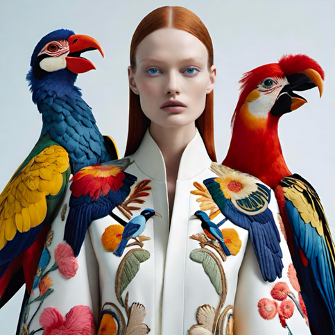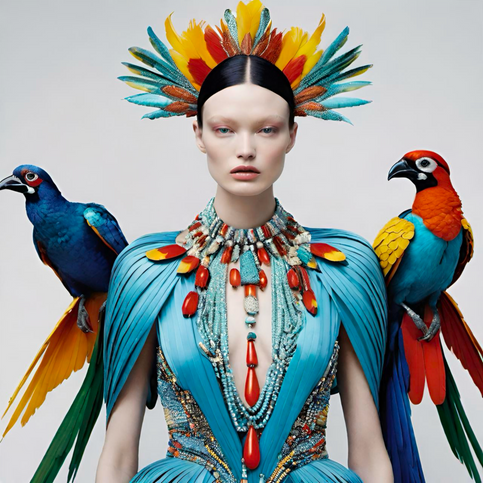 Feathers become fabric, wings turn into silhouettes, and iridescent colors explode across sculptural garments that strut with confidence and wild elegance. Each look channels the attitude and allure of exotic species, transforming their instinctual beauty into wearable flight.