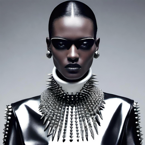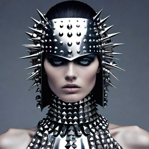 Hard Wear is a bold series of A.I.-generated fashion artworks exploring the raw power of studs as both material and message. Forged in metal and attitude, these looks evoke a futuristic punk armor; sharp, graphic, and unapologetically confrontational.
