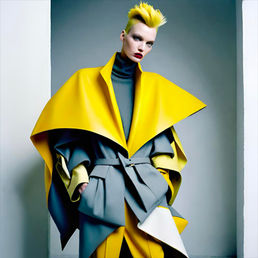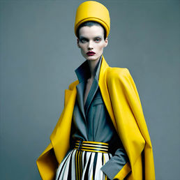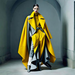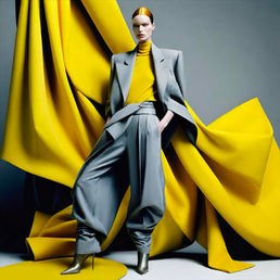 Lemonade is a bold and refined series of AI-generated fashion artworks that reimagines the archetype of the working woman through a fresh, contemporary lens. Using the striking contrast of yellow and grey as its visual foundation, the collection explores strength, intelligence, and elegance with forward-thinking design and unexpected detailing.