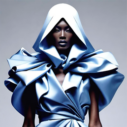Poplin Drapin' is a refined series of A.I.-generated fashion artworks that reimagines the classic crispness of poplin through a contemporary, forward-thinking lens. Focused on innovative draping and elevated minimalism, the collection explores the tension between structure and fluidity in a palette of cool grey-blues, steel tones, and washed indigos.