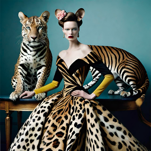 Primal Code is a fierce and sensorial series of A.I.-generated fashion artworks where animal prints do more than adorn; they become the garment. Inspired by the raw beauty and primal energy of creatures like the zebra and leopard, the collection blurs the line between human and beast, fashion and instinct.