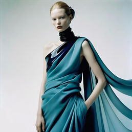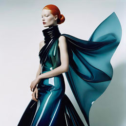 Smokery is a hauntingly elegant series of A.I.-generated fashion artworks inspired by the ephemeral beauty of smoke. Blending lightness and density, movement and stillness, the collection captures the elusive poetry of rising vapor; translating it into garments that float, swirl, and sculpt the body in gradients of blue, grey, and green.