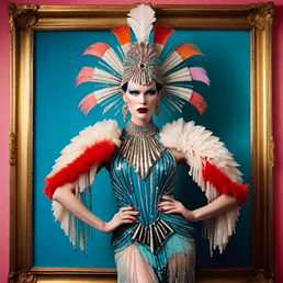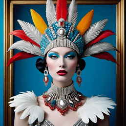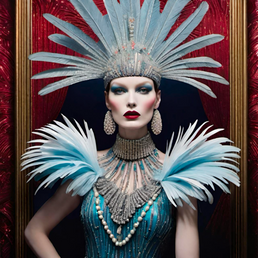 Stardust Follies is a dazzling series of A.I.-generated fashion artworks that pay homage to the golden age of 1920’s showgirls while pushing their allure into the future. Sequins, feathers, and fringe are reimagined through bold contemporary silhouettes, blending Art Deco elegance with avant-garde edge.