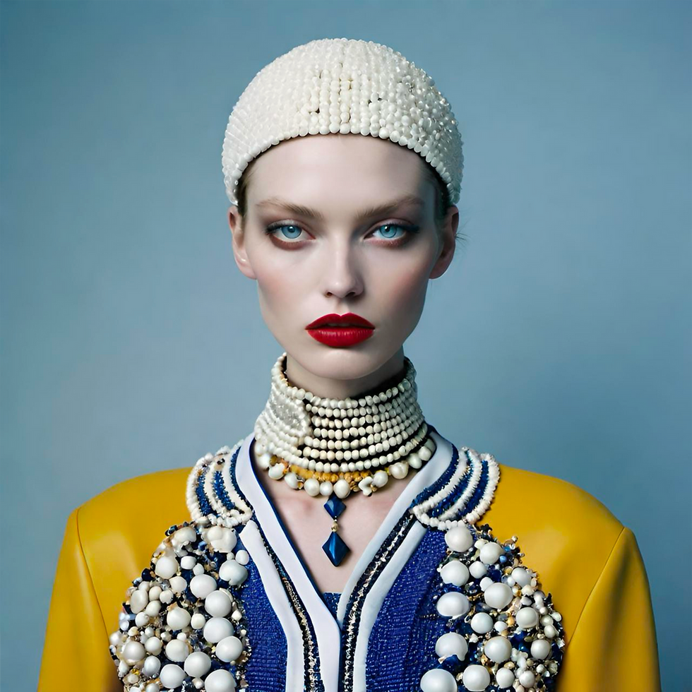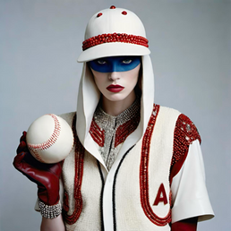 Super Ball is a playful yet forward-thinking series of A.I.-generated fashion artworks that reimagine the spirit of baseball through the lens of high fashion. The collection transforms iconic elements; pinstripes, caps, stitching, gloves, and uniforms; into bold contemporary silhouettes that blur the line between sport and couture.