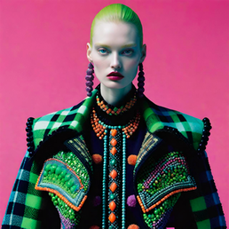 Technoplaid is a dazzling series of A.I.-generated fashion artworks that electrifies the timeless tradition of plaid with futuristic intensity. Merging the structure of heritage with the energy of rave culture, the collection reinterprets classic tartan through vibrant neon hues, intricate beaded embroidery, and the glow of black light.