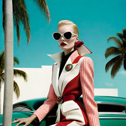 The Carlyle Hotel is a sun-soaked series of A.I.-generated fashion artworks inspired by the iconic Art Deco architecture of Miami’s South Beach, particularly the legendary Carlyle Hotel. Radiating retro glamour, coastal charm, and modern sophistication, the collection captures the essence of a golden era; reimagined through a vibrant, fashion-forward lens.