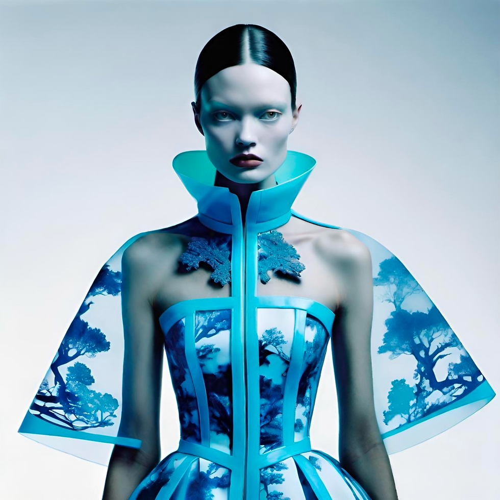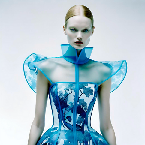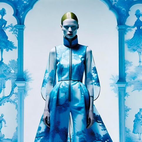 Toile Obscura is a hauntingly elegant series of A.I.-generated fashion artworks that reimagines the classic Toile de Jouy through the spectral lens of x-ray imagery. Stripping away the bucolic charm and revealing a hidden anatomy beneath, the collection transforms delicate pastoral prints into ghostly, translucent layers that blend tradition with the surreal.