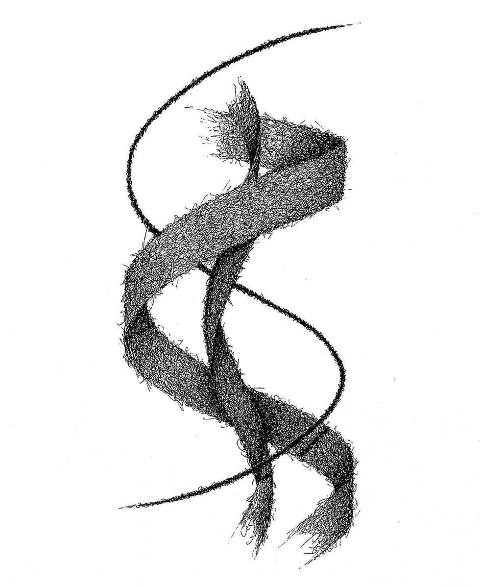 SCRIBBLING ECCENTRIC POSSIBILITIES OF THE KNOWN MOLECULE, AMOUR MIRRORS THE SINGULARITY OF THE D.N.A. WITH THAT OF EACH INDIVIDUAL.